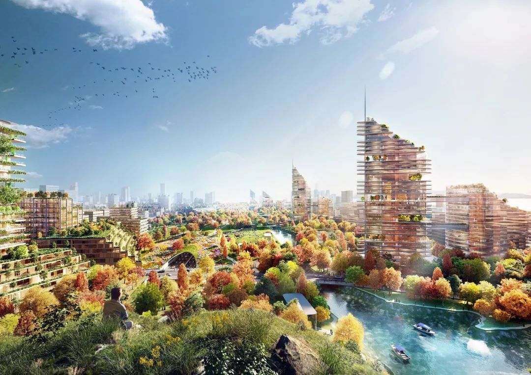 考虑到气候变暖的海平面上升问题,福斯特建筑事务所采取措施进行了相关模拟。一来,通过对防护措施的提升,可以达到清洁水源,排水净水的作用;同时,在延续水体的基础上,通过植被修复形成生态走廊,将大大提升城市的景观效益。占总规划面积50%的绿地,为观光者以及城市居民提供了美丽和谐的远景,人们可以在风光旖旎的湖边进行多种多样的活动。