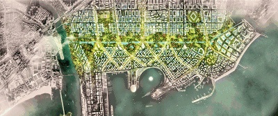 从整体上看,休闲度假设施以及海滩观光、娱乐休闲区、零售设施整合在沿海岸区域,而历史遗迹和居住区则主要在北部,从而更好地与原有城市进行连接。文化、娱乐、运动设施等的公共空间,在项目规划中占据了较的高比例;同时,一些绿色廊道的设置,帮助城市实现了更大比例的绿地自然环境保护。