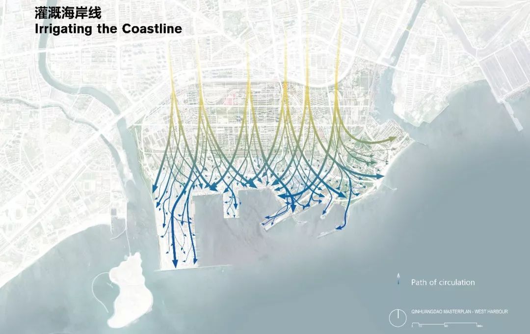 规划将包括东港地区在内的整个海岸线纳入到构思范围。首先展开的是包括北戴河和市中心在内的整个港湾发展设想,团队希望将其打造成为一个国际化的港口,在未来逐步实现新机场建设等的措施。