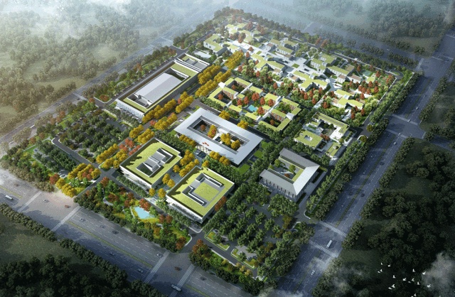 它是一座相当于14个足球场大小的绿色、智慧、创新园区,参照北京故宫中轴线布局,拥有三纵三横的庭院式建筑布局和古朴典雅的建筑风格,诉说着中国传统文化。