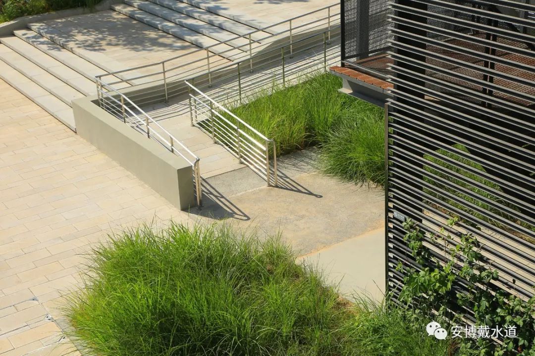 场地内设有四个生态停车场,利用透水铺装使雨水自然下渗,底部填充3米厚砾石,提供充足的滞留空间,让水体自然下渗,溢流部分进入雨水管网,最终实现海绵城市的设计理念。