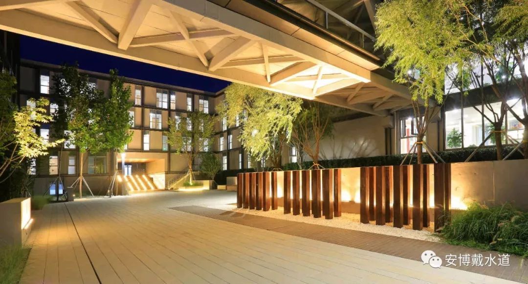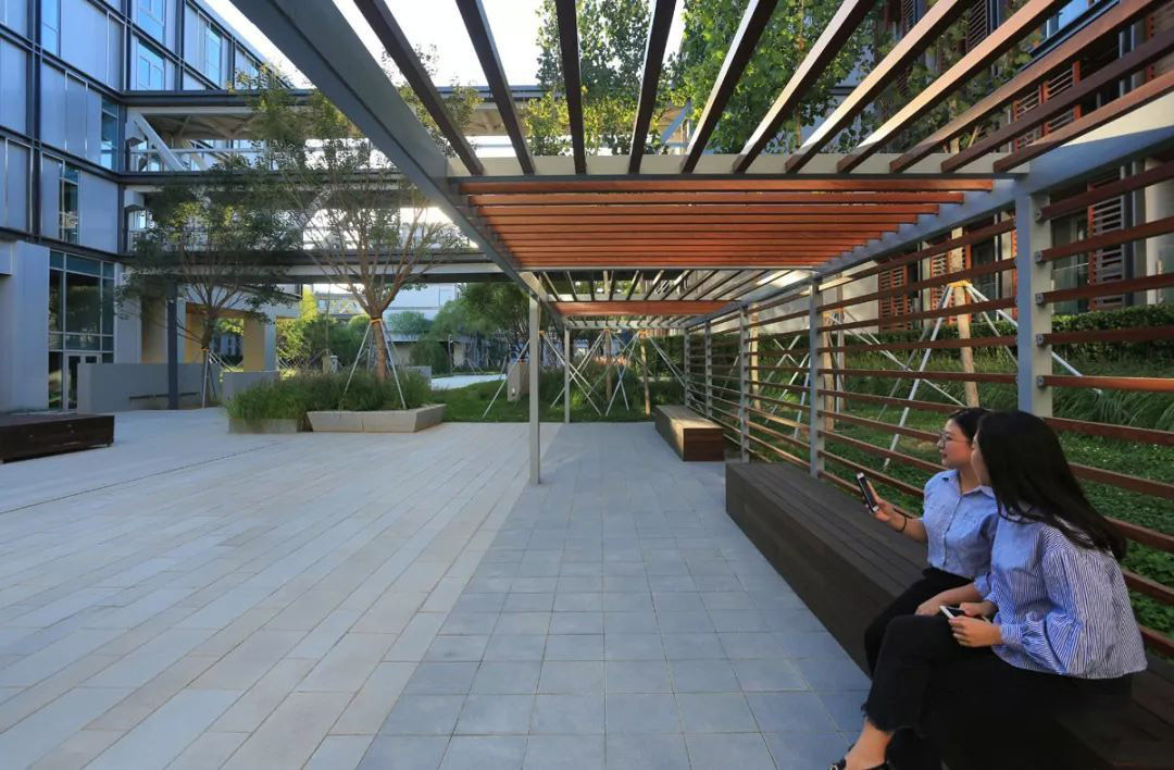 园区室外木铺装均采用重竹木板。重竹木板采用可再生毛竹为生产原料,毛竹利用率达到90%以上,是传统实木地板原料利用率的2.25倍。