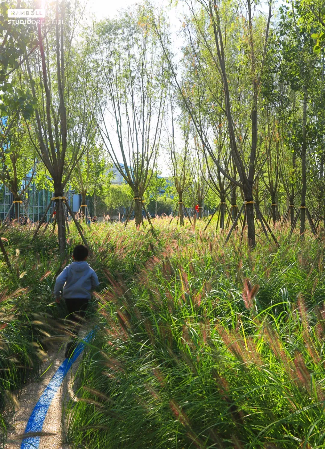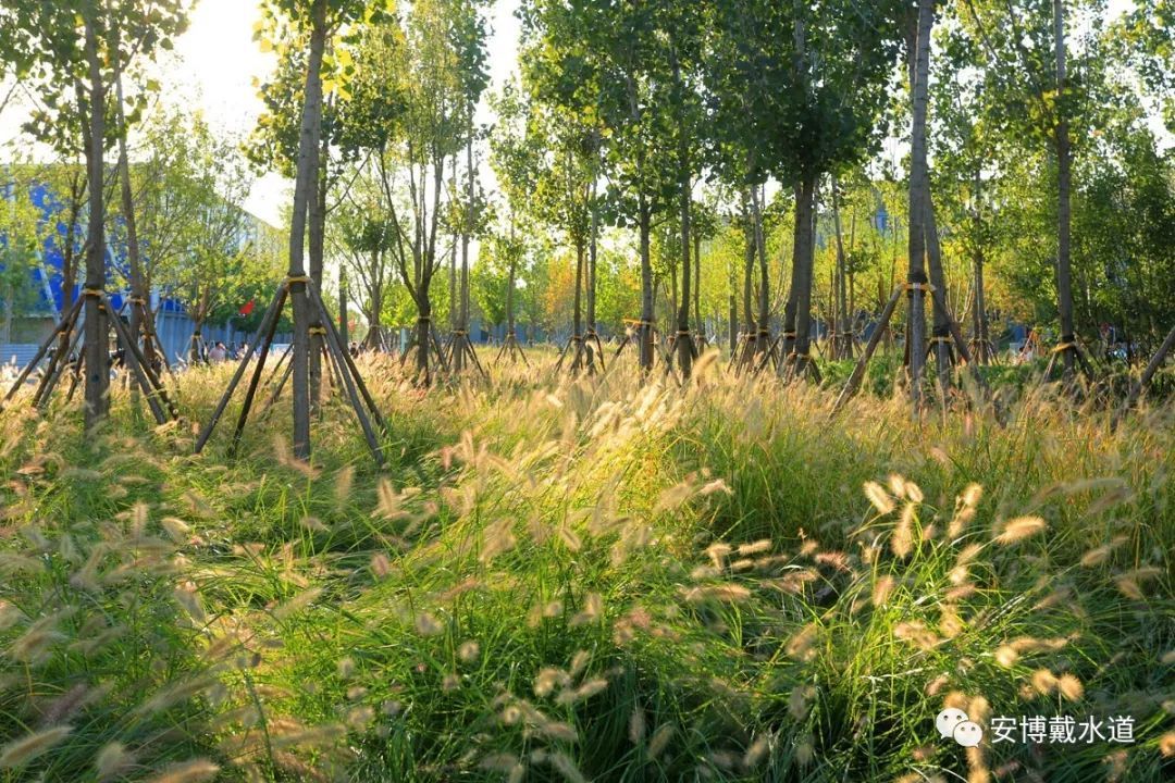 本项目植物设计除了遵循“南北为街,东西为巷”的整体规划设计理念外,我们引入自然种植方式、全生态设计手法以实现自然景观效果。地被植物模拟白洋淀湿地景观效果,大量采用儿狼尾草、茅草等自然生态植物,可实现较低成本维护。