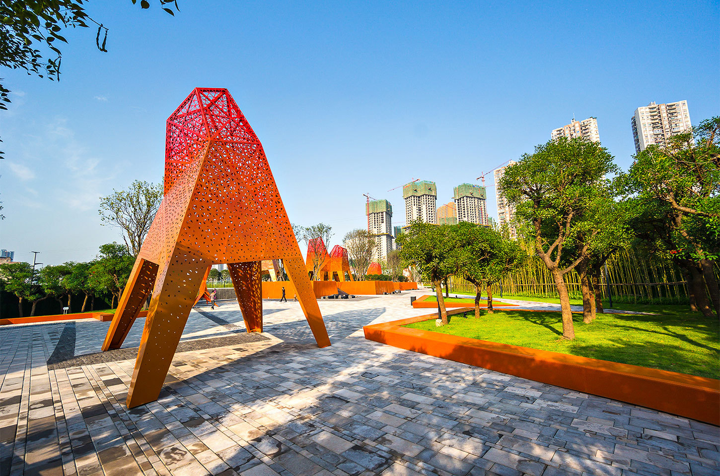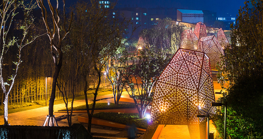 从入口广场的雕塑,“Z”形小道,再到蜿蜒的水景、拐角平台最终到达销售中心,整个公园就是一个连续的快乐旅程。凤鸣山公园已成为洋溢着快乐、活力和备受喜爱的重庆城市景观。