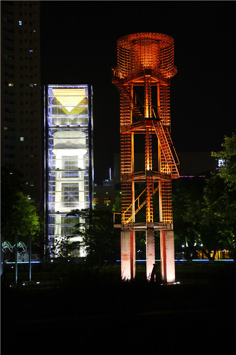 ②更新和再利用——增与减的设计(琥珀水塔、红砖烟囱与龙门吊、铁轨;船坞 – 加法;骨骼水塔、机器肢体 – 减法)