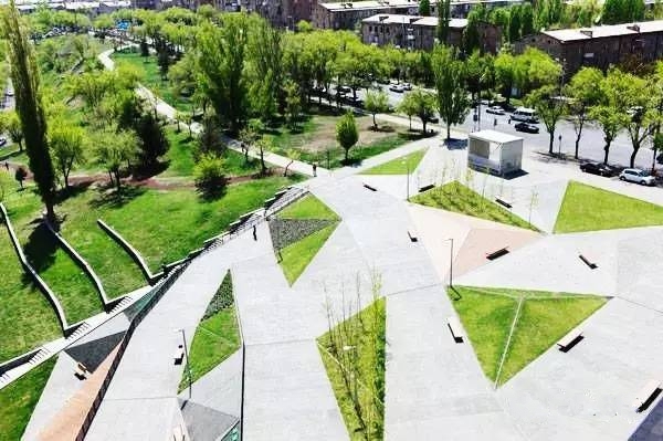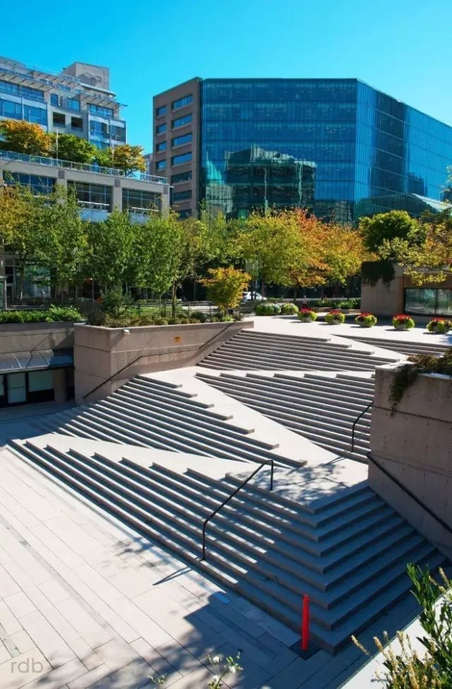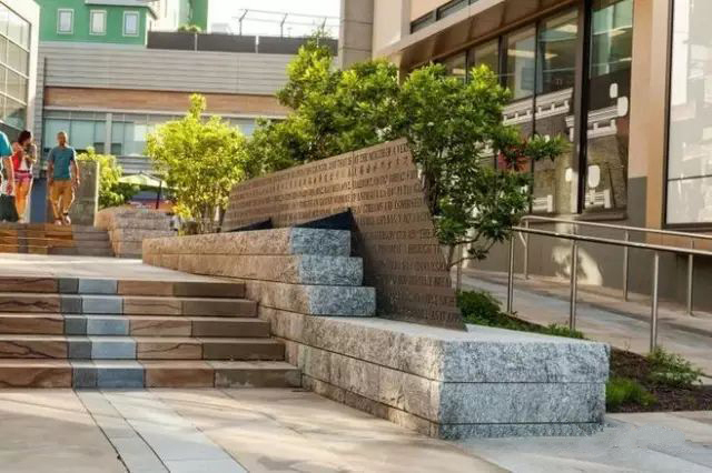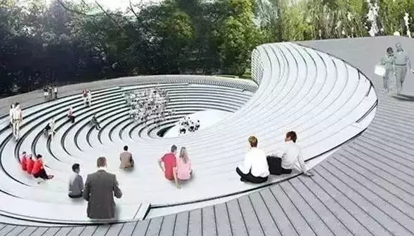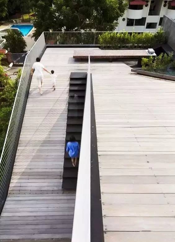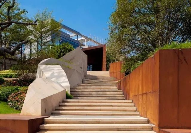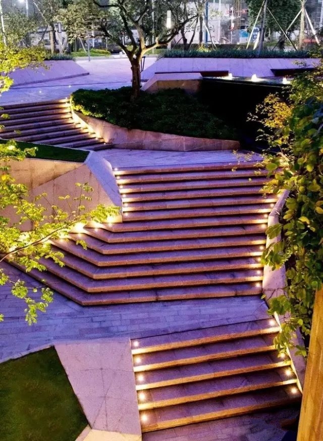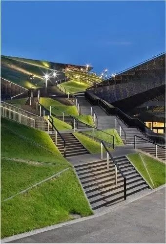 为了满足无障碍设计等需求,在高差允许的情况下,也可以设计坡道。而最精彩的莫过于台阶和坡道结合设计,可以产生很多丰富和有趣的景观。