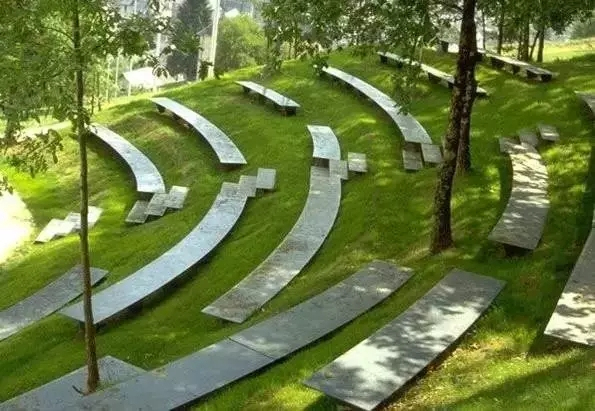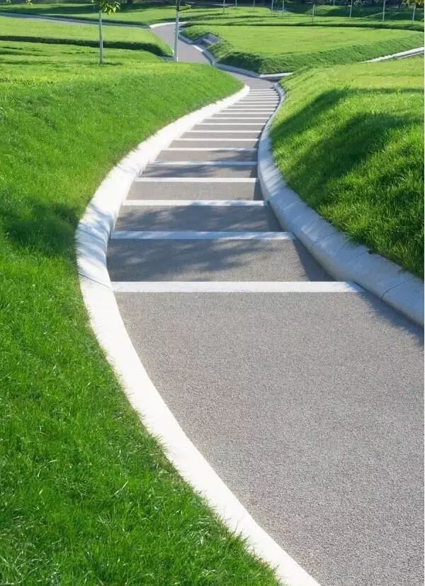 为了满足无障碍设计等需求,在高差允许的情况下,也可以设计坡道。台阶和坡道结合设计,还可以产生很多丰富和有趣的景观