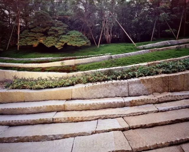 在园林景观设计中,台阶被广泛地运用于堤岸、边坡、桥梁、地形变化等工程设计中,不再仅仅是一种简单功能上的满足,也被赋予不同的形态,来表达不同的景观概念。