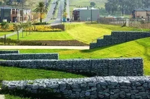 用来解决高差,挡土墙也很常用,是一种快速、有效的高差处理方法,其形式多样,可以为混凝土,石墙或者其他材质,根据风格和作用不同来选择应用。合理、美观地设置景观墙,能有效的成为景观中的亮点,为项目增色不少。挡土墙在选择过程中,首先要对其承载力进行分析,根据地貌、水文、高差选择合适的挡墙形式和材质,确保挡土墙在日后使用安全稳定,不发生倾斜,保证景观效果的最佳性。