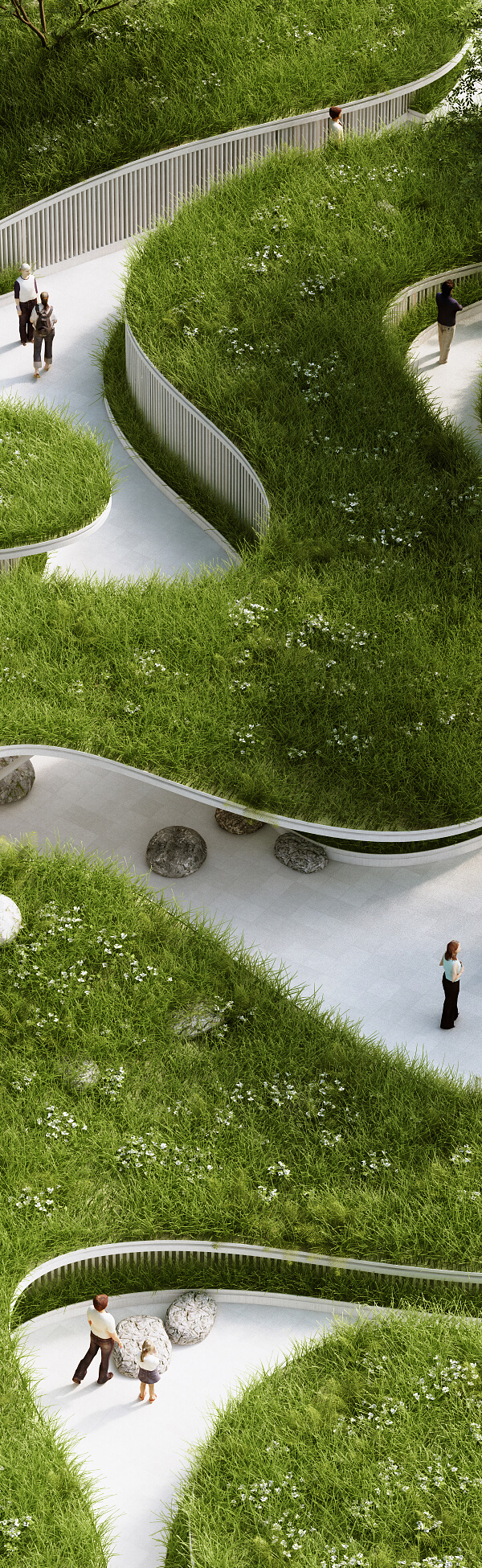 创造起伏的景观地形,既可以解决高差的问题,也可以成为独特的景观。